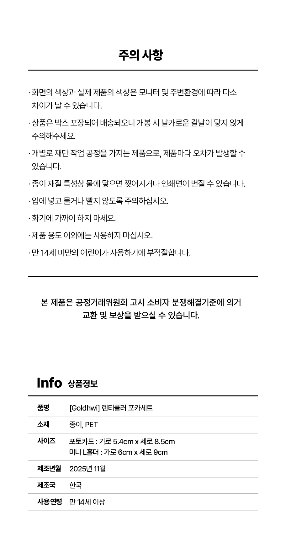 배송 기간 | 상품 출고 후 영업일 기준 1~3일 이내 수령이 가능하며 도서 산간 지역이거나 택배사의 물량이 많은 경우 기간이 조금 더 소요될 수 있습니다. |